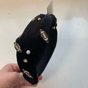 Footballs and Studs Velvet Top Knot Headband - Black - NWT