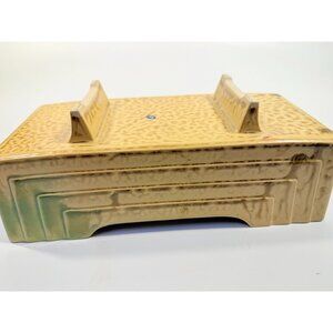 Footed Ikebana Dish Planter Japanese Drip Glaze Mid Century MCM Atomic Retro