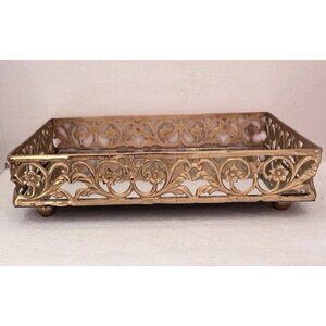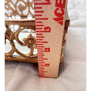 Footed Mirror Tray LG Gold Vanity Filigree Scroll Floral 14" x 9" x 3.5" LUXURY