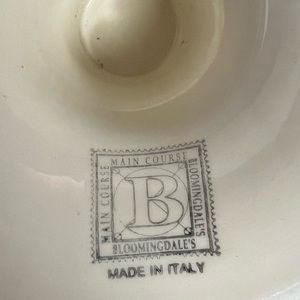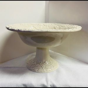 Footed compote in creamy white ceramic with raised fruit design. From Bloomingdales. Made in Italy. Perfect condition. French country, Provencal, Tuscan, shabby, farmhouse, cottagecore.