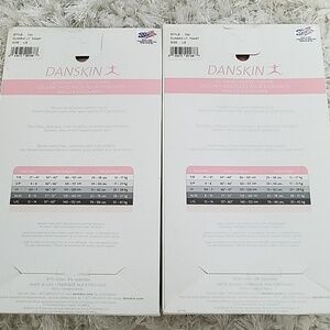 2 pair, NEW, never taken out of box. Danskin. Lt. Toast, size large. 12-15, 55-60" tall, 79-96 lbs. Footed tights.