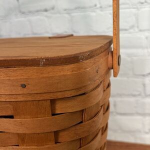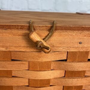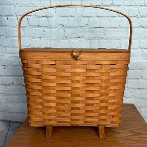 Footed 1993 Longaberger Magazine Basket with Lid & leather latch