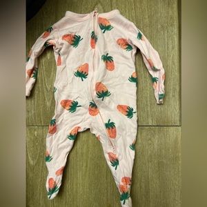 Light pink footie with strawberries