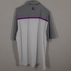 The FootJoy Adult Men's L Metro West Golf Club short sleeve polo golf shirt is a stylish piece of clothing that is perfect for any golf enthusiast. The shirt features a classic striped pattern and a collared neckline, adding sophistication to your golf outfit. It also comes in a multicolor design that is sure to match any golfing attire.