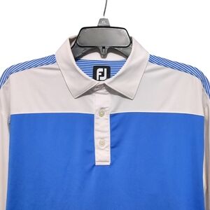 Footjoy Blue White Short Sleeve Sport Collared Polo Shirt Mens Size Large