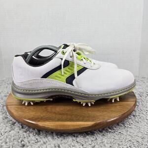 Footjoy Contour Closeout White Lime Leather Athletic Spiked Golf Cleat Men 9.5 M