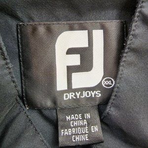 Footjoy Dryjoy zip front long sleeve rain jacket men's size XXL Details: * front zippered pockets * one inside zip pocket * fully lined * zelcro adjustable elastic cuffs Material: * 100% polyester Size: Men's size XXL Flat lay measurements: * armpit to armpit: 28" * shoulder to hem: 30.5" All measurements are approximate all over excellent condition EXCEPT *** small bleach? marks on cuffs see last pictures for up close detail *** smoke free pet free home