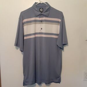 Footjoy FJ Golf Polo Shirt Mens Medium Blue Stripe Performance Stretch