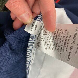 Preowned - marking on upper left shoulder on back of jacket. Unknown material. Some pilling of inner mesh fabric.