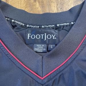 Footjoy FJ Mens L Black Red Trim Long Sleeve V Neck Windbreaker Golf Pullover