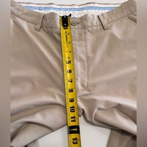 Elevate your golf game and overall style with these beige chino pants from FootJoy. Designed with performance in mind, these pants feature easy care, lightweight, stretch, and breathable fabric. Ideal for any season, these pants are perfect for travel, parties, workwear, or casual outings. The pants have a mid-rise waist of 34 inches and a straight leg style with a 30-inch inseam. The pants also have a flat front, slash pockets, and a zipper accent. These pants are made from a polyester, spandex, and polyester blend and are machine washable. All items are cleaned according to the manufacturers guidelines. “All photos were taken by me and are of the actual item for sale”