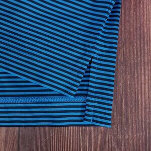 Footjoy FJ Mens Size Large Blue Black Striped Short Sleeve Golf Performance Polo Shirt Stretch
