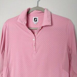 Footjoy FJ pink white polka dot long sleeve golf mesh L