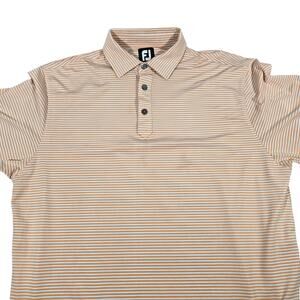 Footjoy Golf Orange & Gray Stripe Polo Self Collar Golf Polo L Elmcrest Logo on Sleeve
