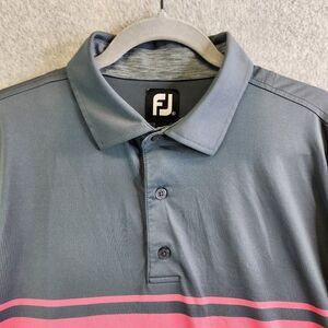 Footjoy Golf Shirt Mens Extra Large Gray Pink Striped Polo Side Slit Regular Fit