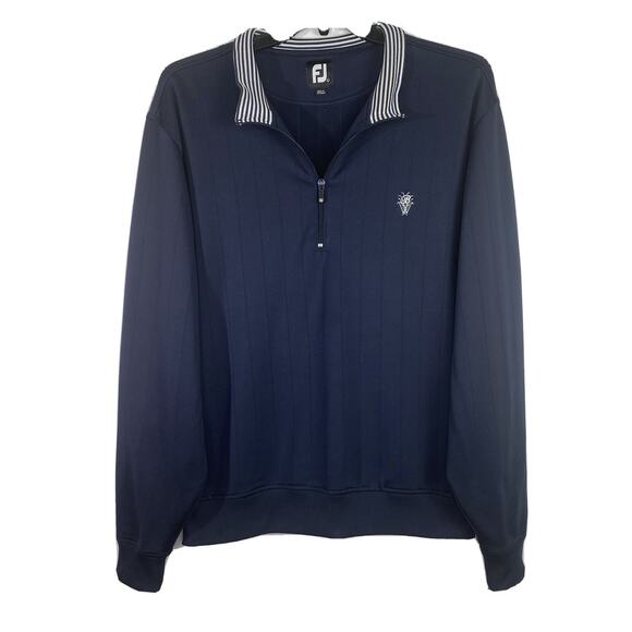Men’s Footjoy Drop Needle with Gathered Waist Long Sleeve Pullover Half Zip Closure and Striped Collar