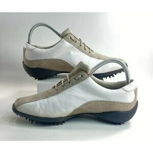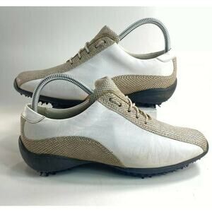 Footjoy LoPro Lace Up Athletic Golf Shoe Womens Size 7 97208 White Tan Leather