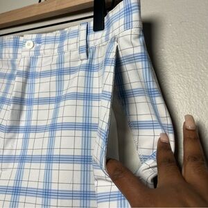 Footjoy Men Performance Shorts 34" White Blue Stripe Golf Outdoor 9" Inseam