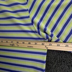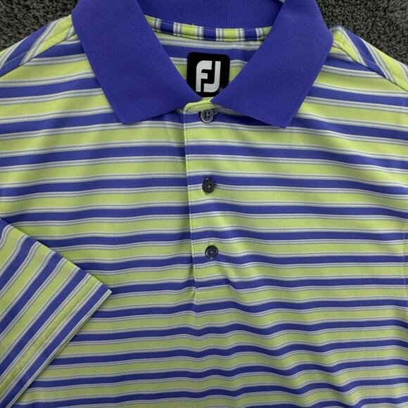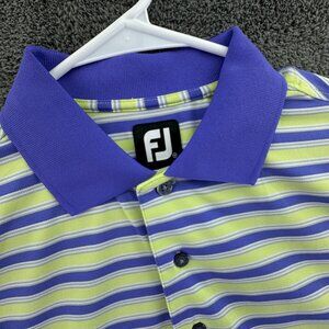 Footjoy Men Striped Purple Green Polo Shirt Medium Stretch Golf Adult S/S
