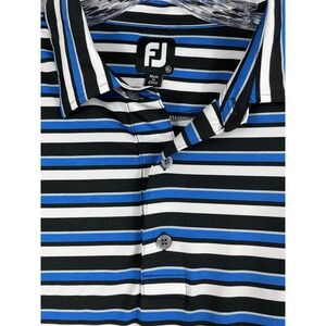 Footjoy Men's Black Blue White Stripe Golf Polo Shirt Size XL Good condition. See photos for details.