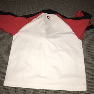 The FootJoy Men's Large Quarter-Zip Pullover Windbreaker Golf Jacket is a stylish and functional outerwear option designed specifically for golf enthusiasts. Made with polyester material, this jacket offers durability and breathability, making it ideal for outdoor activities. The pullover style and windbreaker design provide easy wear and protection against the elements, while the red color adds a pop of color to your golf wardrobe. Perfect for staying comfortable and stylish on the golf course, this jacket is a must-have for any golfer looking to stay warm and protected during their game.
