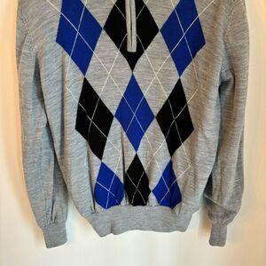 Footjoy Men’s Lined Performance argyle gray golf Sweater quarter zip Wool exterior size Medium EUC!