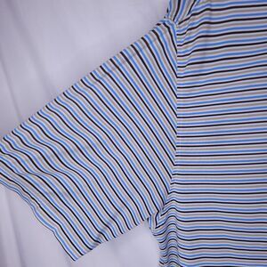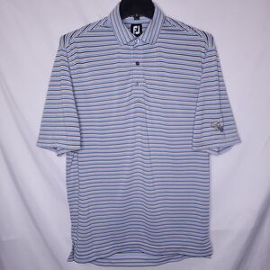 Footjoy Polo Shirt Mens Medium Striped Blue, White, Brown Golf