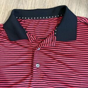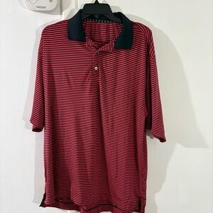 Footjoy Polo Shirt Mens Sz Large Red Black Stripe Performance Golf Sports