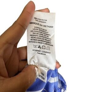 Has a flaw. On the back it has a tiny hole but does not pierce through the shirt. Also has a small logo on the side. Pictured.