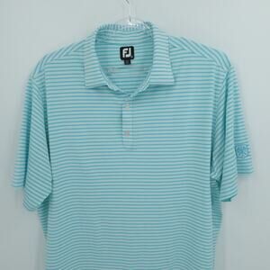 Footjoy Shirt Mens 2xl XXL Blue Green Striped Golf Polo Embroidered Logo Stretch