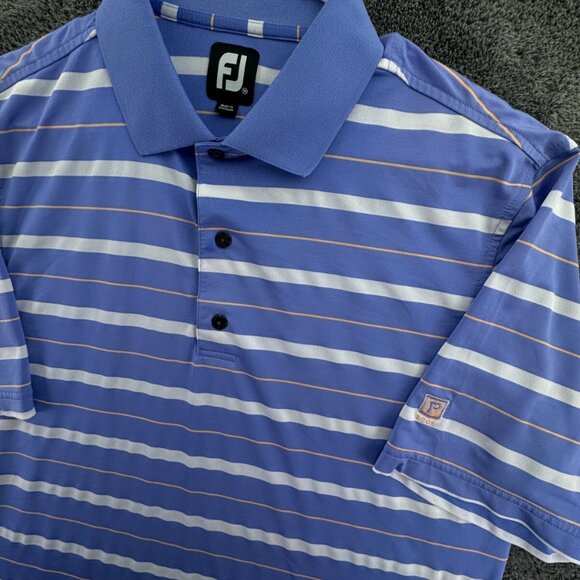 Footjoy Short Sleeve Golf Polo Shirt Blue Striped Medium Stretch 1908 Mystery
