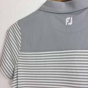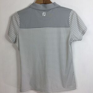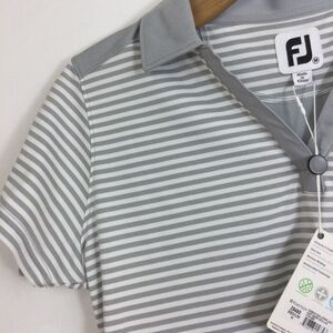 Footjoy Womens Tonal Stripe Lisle Open Collar Polo Golf Shirt Heather Grey M NWT
