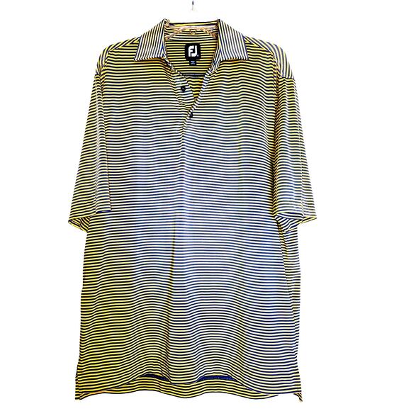 Men's FJ golf polo Size medium yellow with bluish/gray stripes Great condition