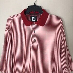 Footjoy prodry Lisle red and white striped polo performance wear shirt size L