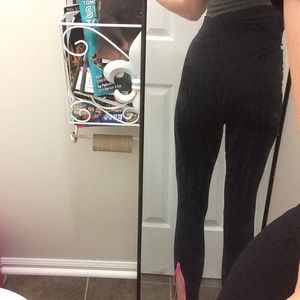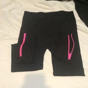 I wear these as leggings with a long shirt and they look great. The pink zipper is so cute. Size s/m very stretchy