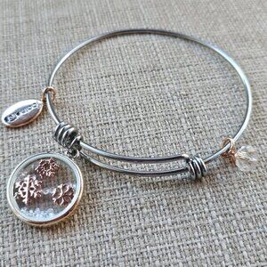 Footnotes Bracelet SNOWFLAKES Charm Silver Tone Wrist Band Holiday Jewelry