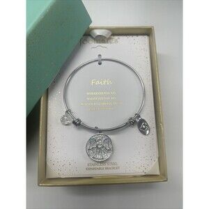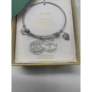 Footnotes “FAITH” Guardian Angel Expandable Bangle Charm Bracelet New