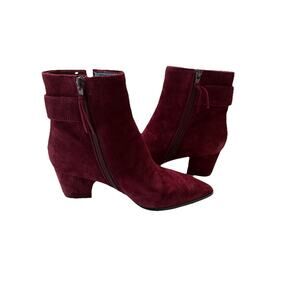 Footnotes Women’s Size 7 Suede Ankle Booties Red Burgundy W/ Tassle Y2K style