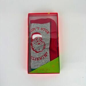 Double the cozy, double the cheer! This festive 2-pair sock set features a jolly Santa design with the phrase “Don’t Stop Believin’.” Packaged in a red-and-gold holiday gift box, they’re perfect for stockings, Secret Santa swaps, or keeping both you and your favorite elf warm.