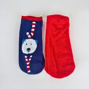 🐻❄️ Includes 2 pairs of socks — one “JOY” polar bear design, one solid red