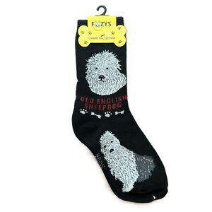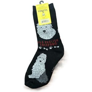 NWT Foozys Black Old English Sheepdog Design Crew Socks Women's One Size