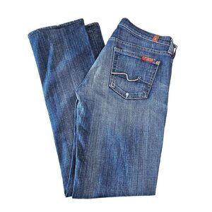 For All 7 Mankind Straight Leg Stretch Jeans Denim Distressed Mid-Washed Blue 26