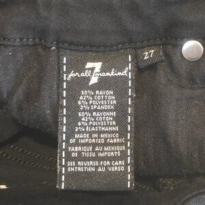Skinny jeans for thinner ladies. Brand name is 4 All Mankind. Made in Mexico they are black in color. Showing size 27 on label.