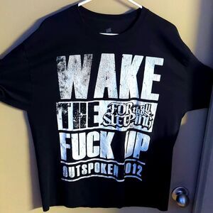 tags: For All Those Sleeping shirt, metalcore band tee, Outspoken tour merch, wake the f up shirt, Gildan XL band shirt, punk rock graphic tee, emo scene shirt, 2012 tour shirt, Mercari band tee, Poshmark music merch