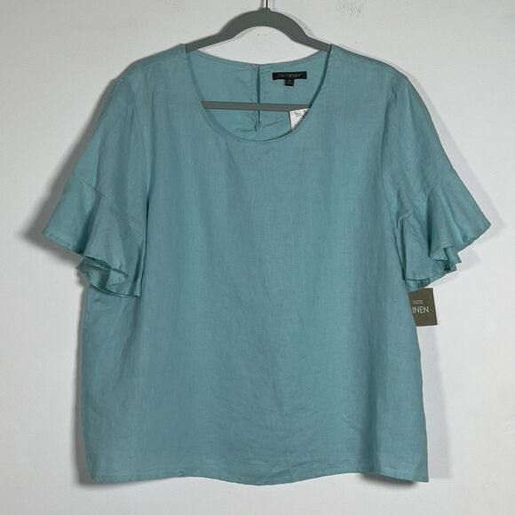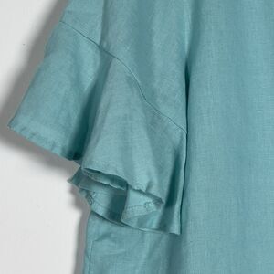 For Cynthia 100% Linen Top Womens Sz XL Turquoise Flutter Short Sleeves