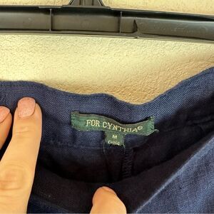 For Cynthia Blue Navy Crop Linen Pants High Waisted Lagenlook Artsy Medium