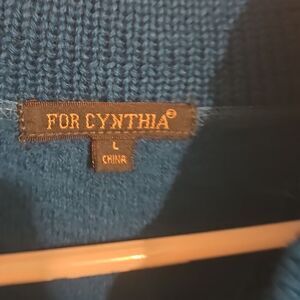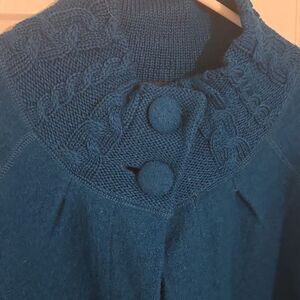 For Cynthia Blue Shrug with Open Front and Relaxed Fit 100 percent wool