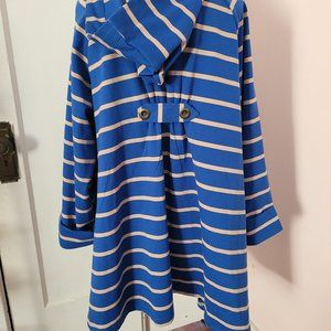 For Cynthia Blue and Tan Stripe Hooded High Low Jacket. Size XL