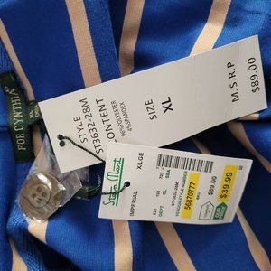 Introducing a stylish blue and tan striped jacket from the brand For Cynthia. This jacket is made from a comfortable and stretchy polyester spandex blend material. The jacket features a hooded design and a zip closure. It is machine washable and easy to care for. The jacket is available in size XL and is perfect for women who want a colorful and basic jacket to add to their wardrobe. The jacket is ideal for those who love a blend of fashion and comfort. So, get your hands on this fashionable jacket today!