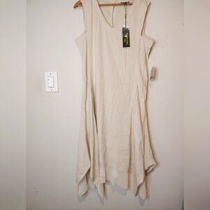 For Cynthia Dress Linen Blend Sleeveless Scarf Hem Size Petite PXL MSRP $89